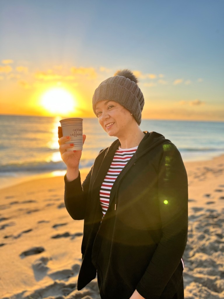 En la otra esquina del mundo, mi esposa Diana disfruta de una taza en la playa mientras el sol cae sobre el mar. Es la prueba de que ese café, que comenzó en las montañas, puede cruzar fronteras y llenar de calidez momentos únicos.